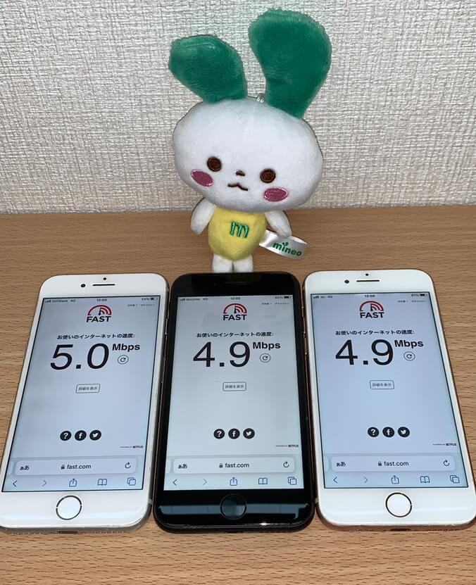 | Sプラン (SoftBank) | 4.8Mbps | 5Mbps近く |